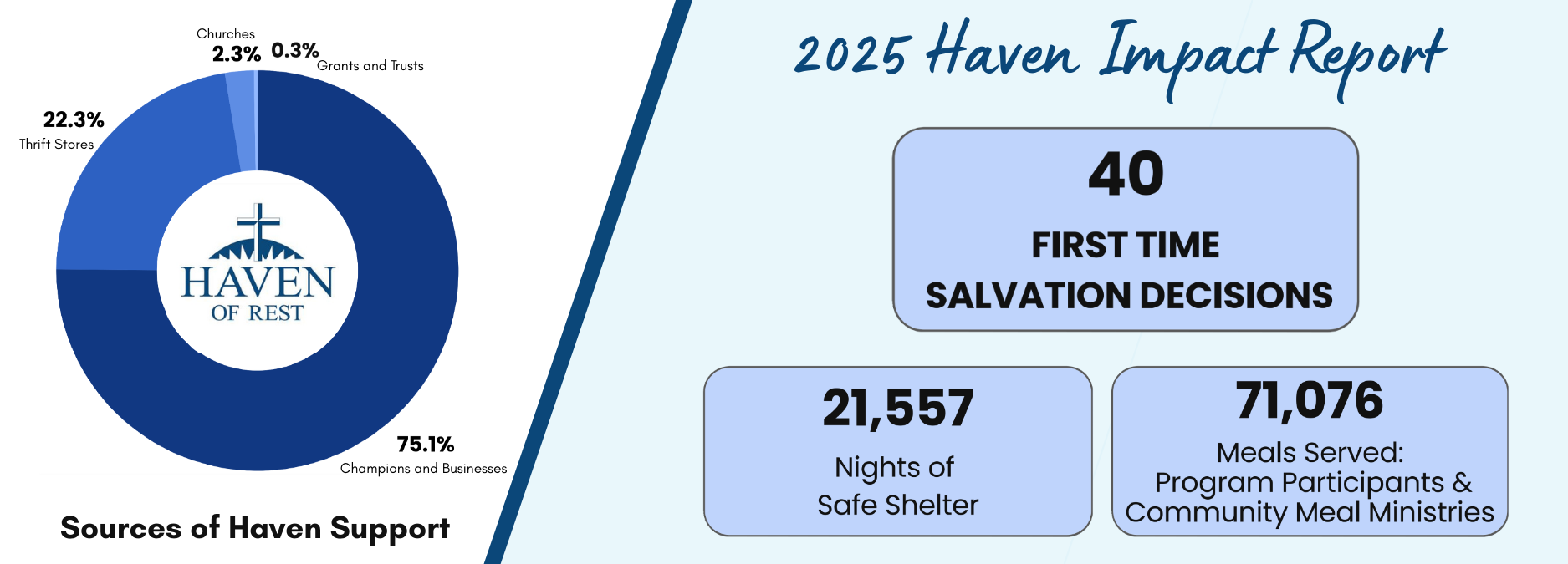 Through thousands of hours of Bible teaching the Haven of Rest is designed to rescue, restore, and release men and women facing life-dominating problems.