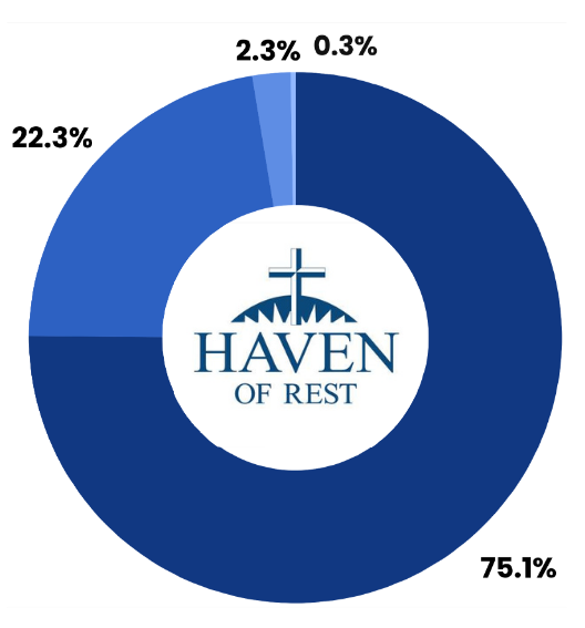 85% of the ministry’s entire income goes directly into the lives of those we serve through programs and services provided, with just 9% for all administration and 6% for fundraising.
